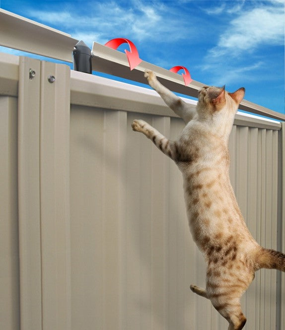Het Oscillot Systeem doorbreekt deze actie doordat de kat de bovenzijde van de schutting niet vast kan grijpen.